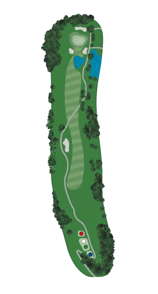 緩やかな打ち下ろしが続くロングホール。一見寛容に見えるフェアウェイも、風と距離感の読みがスコアを左右します。冷静に次の一打を選ぶことで、確かなチャンスが見えてきます。