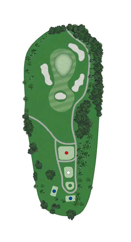 距離と風を読み切る力が問われるパー3。やや長めの設計がプレッシャーを生み、正確なクラブ選択と集中力がスコアを分けます。