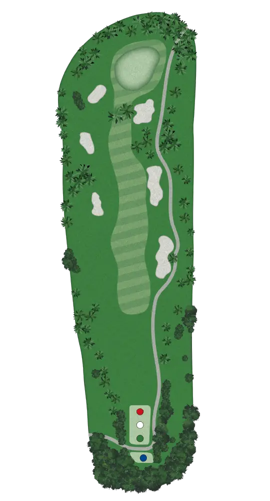 ほぼフラットなフェアウェイが続く、ストレートなミドルホール。基本に忠実なプレーこそが最良の結果を生む、美しきコースです。