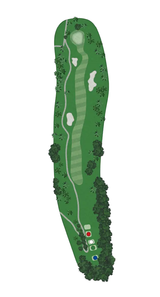 ティーショットの高低差が距離の長さを包み隠す。強く振れば振るほど、イーグルチャンスは近づく。大胆さと正確さの融合が試されるコースです。
